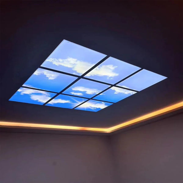 Stunning Sky Effect: 2x4 and 2x2 LED flat panel lights create a realistic sky effect through the background image of blue sky and white clouds. This lighting effect does not interfere with brightness or illumination, providing a more natural and comfortable lighting experience.