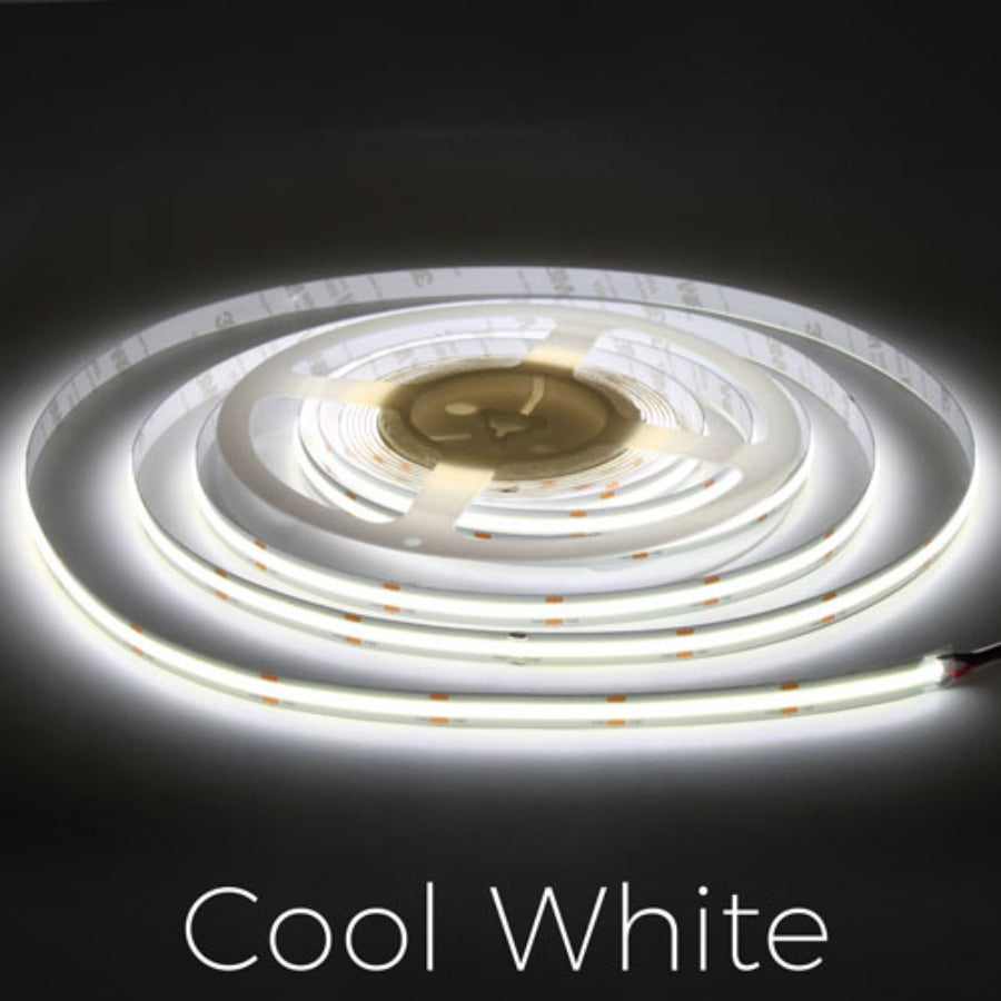 The Patel LED 24VDC Accent Series Dotless COB LED Strip Light delivers flawless, continuous illumination with advanced Chip-on-Board (COB) technology, featuring 528 LEDs per meter and a high CRI >90 for up to 1400 lumens per meter of bright, true-to-life lighting without visible dots. Selectable in 3000K Warm White, 4000K Neutral White, or 6000K Cool White, this 24V flexible strip is designed for professional installations and longer runs, making it perfect for kitchens, workspaces, retail shelves, and accent lighting. Built with industrial-grade 3M adhesive and cuttable every 2.46 inches, it allows precise customization with no wasted length, while the 24V design minimizes voltage drop for longer continuous runs compared to 12V strips. Each 10M (32.8ft) reel is ETL Listed for safety and can be extended end-to-end or routed around corners using wire or solderless connectors. Operating on 24V DC constant voltage at 14W per meter (~140W per reel), the strip is highly efficient and should be paired with a properly sized power supply (10-20% overhead recommended). Fully dimmable, it works seamlessly with 24V PWM dimmers or dimmable power supplies compatible with standard wall dimmers such as Lutron and Leviton, making it a reliable choice for both residential and commercial projects.