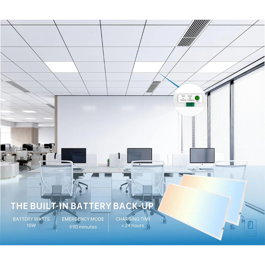 2x4 LED Flat Panel Light with Emergency Battery Backup – 50W, 3000K/4000K/5000K, UL Listed – 120-Minute Emergency Power, 6500 Lumens