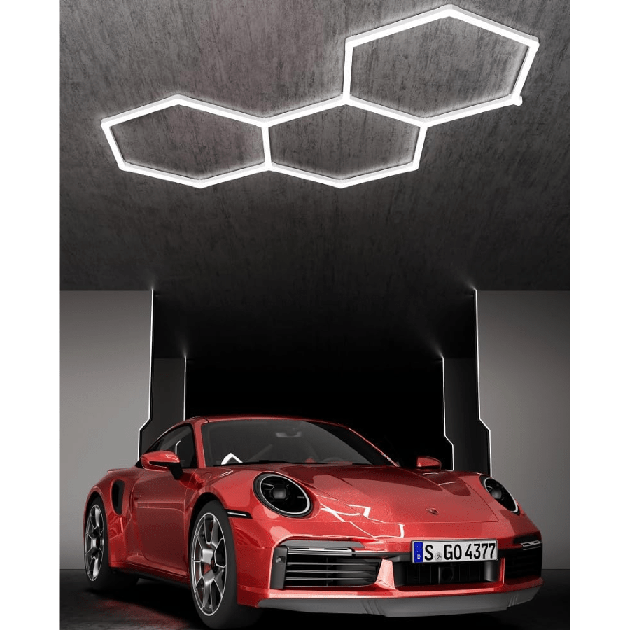 Transform your workspace with the Hexagon LED Garage Light by Patel LED, designed to provide ultra-bright illumination with an advanced honeycomb structure. Delivering 15360 lumens at 6500K, this high-output LED lighting system ensures crisp, natural white light ideal for garages, gyms, warehouses, auto detailing shops, workshops, and salons.