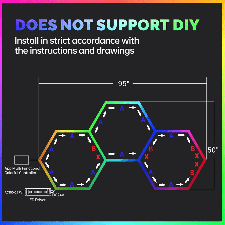 Includes all required accessories: zip ties, screws, connectors, and a 5-ft power cord. The modular hexagonal design allows for easy assembly on any surface. -