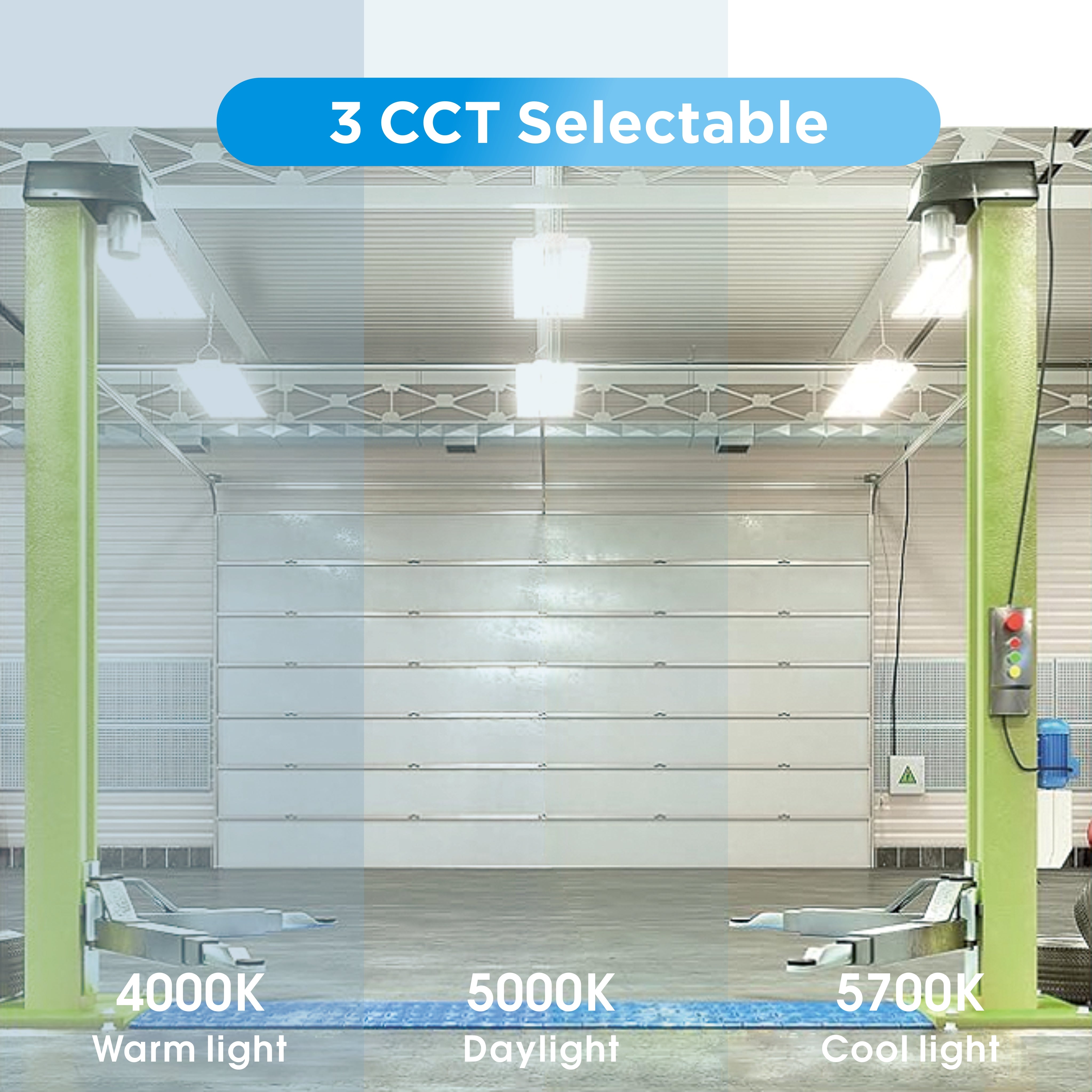 - 3 Color Temperatures (ranging from 4000K-5000K-5700K) offer the flexibility to create the perfect ambiance for your workspace. Whether you prefer a Warm White with 4000K/ Daylight 5000K/ Cool White 5700K, this LED Linear hibay Light Fixture provides a diverse range of color temperature options to fit your preference.Select the perfect color temperature that suits your workspace needs - from bright white for optimal visibility, to warm white for a more relaxed and soothing atmosphere.